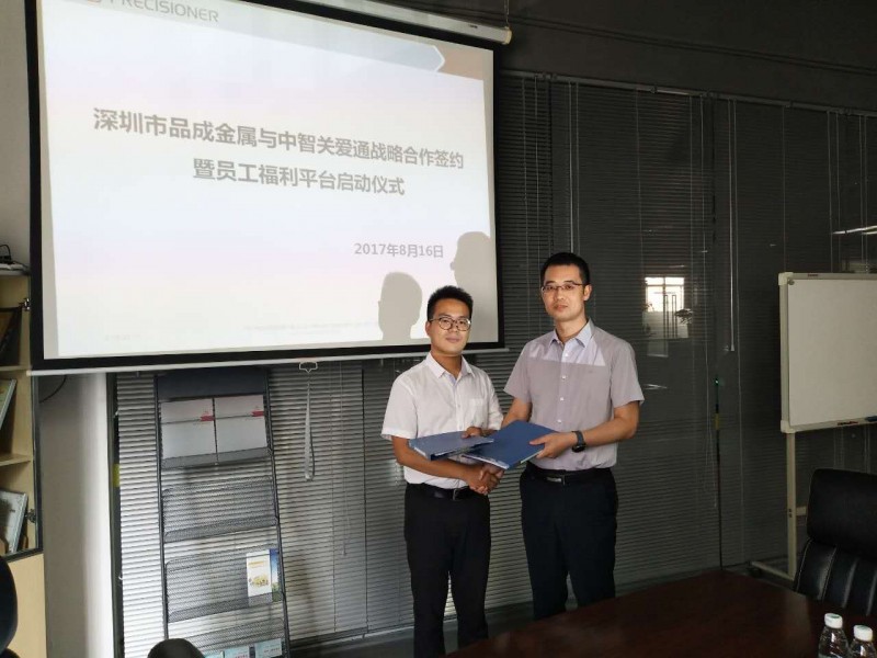 2017年8月16日,深圳市品成金屬制品有限公司(以下簡稱,品成金屬)與中智關愛通(上海)科技股份有限公司(以下簡稱,關愛通)簽署戰(zhàn)略合作協(xié)議,雙方將共同搭建專屬品成金屬的員工關愛平臺。